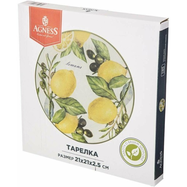 AGNESS ТАРЕЛКА ЗАКУСОЧНАЯ "ЛЕМОН ТРИ" 21*2,5 СМ (КОР=24ШТ.) 358-1557
