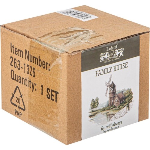 ТM Lefard эксклюзивная коллекция «FAMILY HOUSE» - качество и функциональность в оригинальном дизайнерском исполнении. Дом – это самое любимое место, лучше и дороже которого нет на свете, где в просторной гостиной найдется место провести вечер и пригласить гостей. Lefard предлагает широкий выбор предметов, позволяющих создать неповторимый интерьер, сервировать гостеприимный стол и превратить процесс приготовления блюд в удовольствие. Тарелки и блюда, кружки и чайные пары, чайники, сахарницы и банки легки в уходе и использовании. Оригинальная упаковка. Прекрасный подарок. Вся продукция сертифицирована и безопасна для контакта с пищевыми продуктами. Разрешено мыть в посудомоечной машине. Фарфоровую часть можно использовать в духовом шкафу, микроволновой печи.