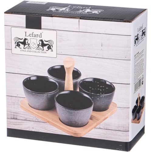 LEFARD НАБОР СОУСНИКОВ "GRAPHITE" 4 ШТ. 175 МЛ 19*6.5 СМ НА ДЕР. ПОДСТАВКЕ С РУЧКОЙ (КОР=16НАБ.) 474-240