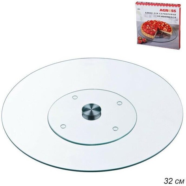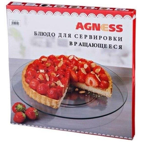 Вращающаяся тортовница AGNESS выполнена из качественного закаленного стекла, обладает непористой поверхностью и не впитывает запахи. Легко и быстро моется теплой водой.
