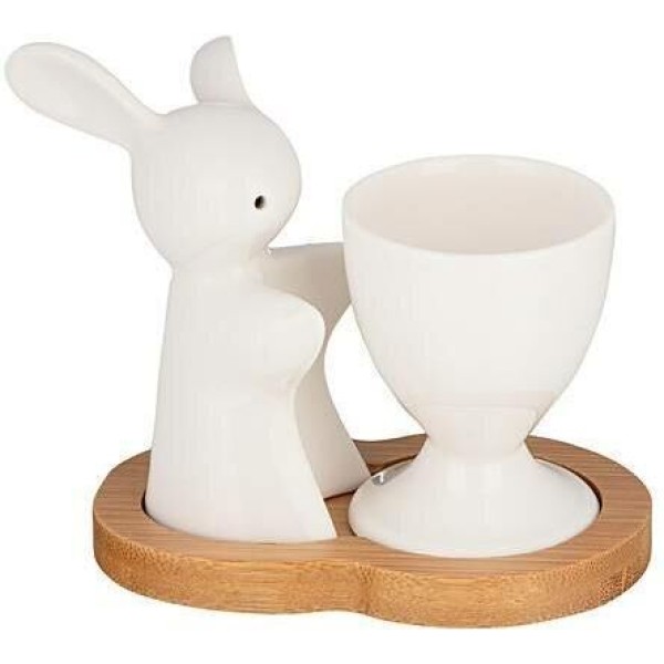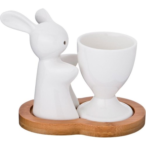 Материал: Фарфор, бамбук Описание: Подставка для яйца + солонка. Примечание: деревянная часть НЕ предназначена для использования в микроволновой печи и мытья в посудомоечной машине Материал: Керамика (Доломит)