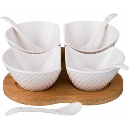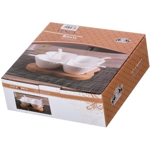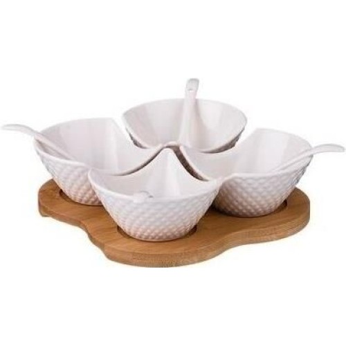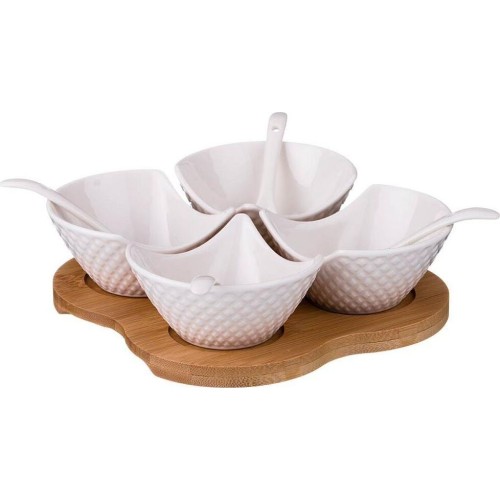 4-х секционная менажница, бамбуковая подставка, 4 ложки