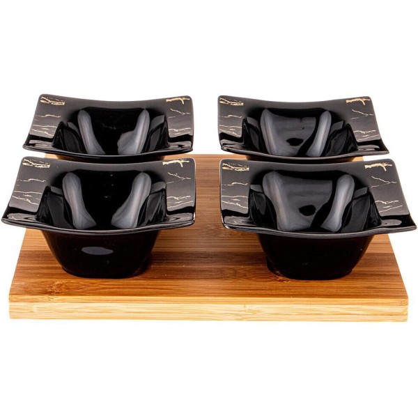 LEFARD НАБОР ИЗ 4 САЛАТНИКОВ НА ДЕРЕВ.ПОДСТАВКЕ "FANTASY" 11,5 СМ ЧЕРНЫЙ (КОР=12НАБ.) 42-361