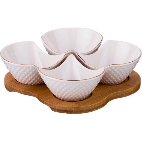 LEFARD МЕНАЖНИЦА 4 СЕКЦИИ НА ДЕРЕВ.ПОДСТАВКЕ "ДИАМАНД ГОЛД" 18*18*5 СМ (КОР=24НАБ.) 359-380