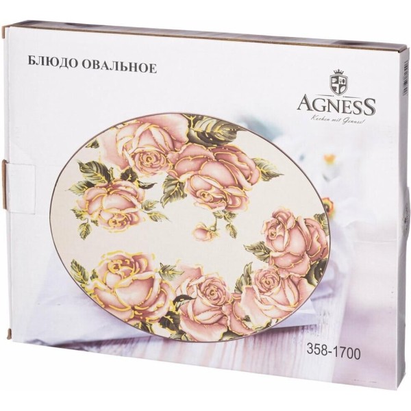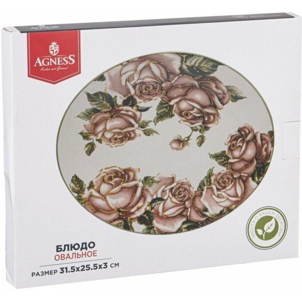 AGNESS БЛЮДО ОВАЛЬНОЕ "КОРЕЙСКАЯ РОЗА" 31,5*25,5 СМ. ВЫСОТА=3 СМ. (КОР=18ШТ.) 358-1700