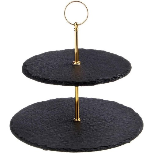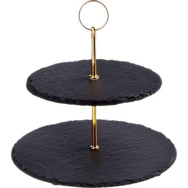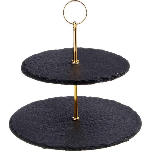 AGNESS ЭТАЖЕРКА "ЧЕРНОЕ ЗОЛОТО" СЕРВИРОВОЧНАЯ 2-Х ЯРУСНАЯ ДИАМ. 25*20 СМ ВЫСОТА 24 СМ (КОР=10ШТ.) 925-123