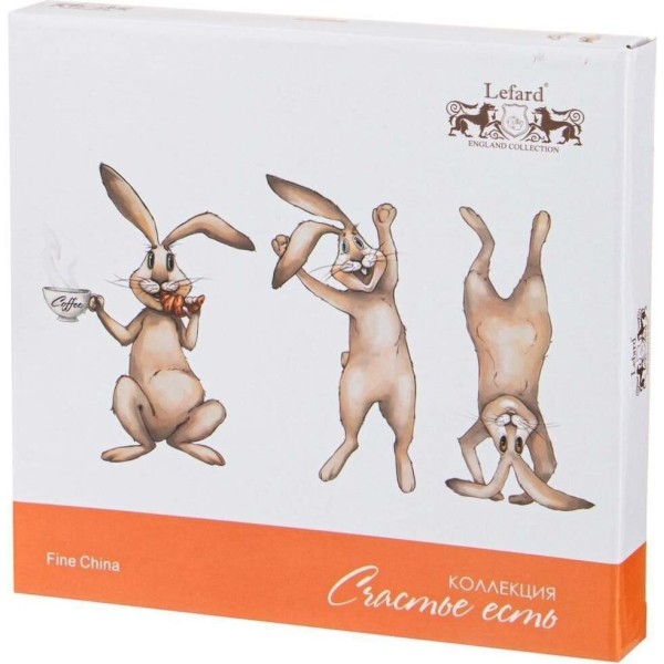 Всем, кто полон энергии и задора, любит кофе и следит за фигурой посвящается коллекция «Счастье есть» от ТМ LEFARD. Это лучший подарок детям, родителям, друзьям и коллегам. Поднимайте настроение вместе с веселыми кроликами, верьте, Счастье есть! Кружки, чайные пары, стаканы с силиконовыми крышками, банки для кофе, тарелки и салатники выполнены на тонкостенном высококачественном фарфоре. Удобные формы и размеры. Красочная упаковка. Продукция прошла сертификацию, безопасна для контакта с пищевыми продуктами. Можно использовать в микроволновой печи, мыть в посудомоечной машине.