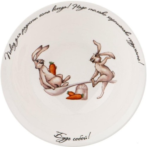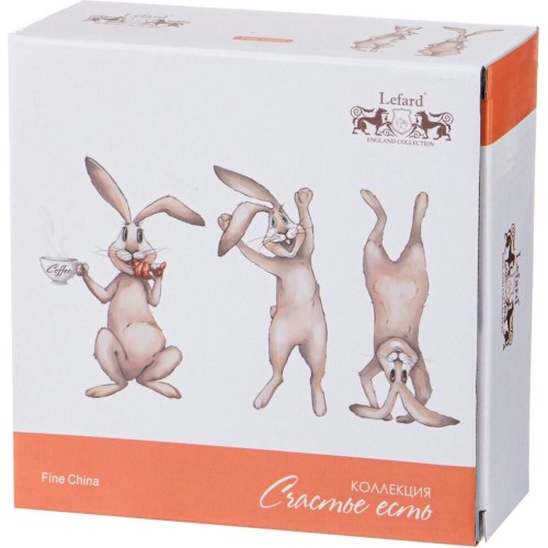 Всем, кто полон энергии и задора, любит кофе и следит за фигурой посвящается коллекция «Счастье есть» от ТМ LEFARD. Это лучший подарок детям, родителям, друзьям и коллегам. Поднимайте настроение вместе с веселыми кроликами, верьте, Счастье есть! Кружки, чайные пары, стаканы с силиконовыми крышками, банки для кофе, тарелки и салатники выполнены на тонкостенном высококачественном фарфоре. Удобные формы и размеры. Красочная упаковка. Продукция прошла сертификацию, безопасна для контакта с пищевыми продуктами. Можно использовать в микроволновой печи, мыть в посудомоечной машине.
