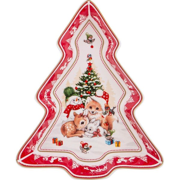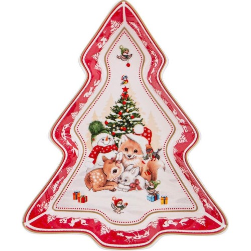 LEFARD БЛЮДО "С НОВЫМ ГОДОМ " В ФОРМЕ ЕЛКИ 25Х21Х4 СМ КРАСНОЕ (КОР=8ШТ.) 85-1959