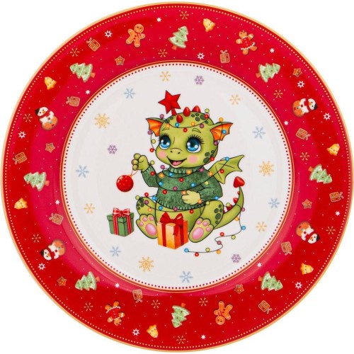 ТМ LEFARD New Year Collection для детей украсит праздничный новогодний стол и порадует Ваших детей в самые ожидаемые дни в году. Символ 2024 года - дракон. Забавные дракончики на тонкостенном высококачественном фарфоре станут прекрасным подарком. Посуда упакована в яркие коробки. Продукция прошла сертификацию, безопасна для контакта с пищевыми продуктами. Можно использовать в СВЧ, не рекомендуется мыть в посудомоечных машинах во избежание повреждения золотой отводки (деколи) на изделиях.
