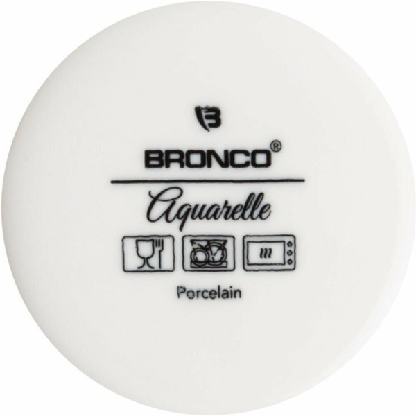 TM Bronco коллекция «Aquarelle» - это посуда с ультрамодным акварельным рисунком выполненным в технике тампонной печати. Новый имидж посуды на каждый день. Упрочненный фарфор для активного использования. Современные формы и удобные размеры. Натуральные цвета. Чистый фарфор. Сверкающая глазурь. Прекрасно сочетается с цветной посудой коллекций «Mirage»и «Sentiment». Износостойка. Надолго сохраняет свой первоначальный вид. Можно смело использовать в микроволновой печи, ставить в холодильник и мыть в посудомоечной машине. Посуда прошла сертификацию. Безопасна для контакта с пищевыми продуктами.
