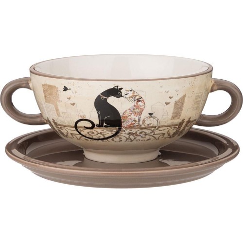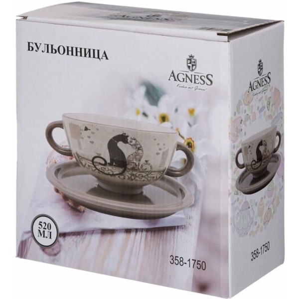 AGNESS БУЛЬОННИЦА С БЛЮДЦЕМ "ПАРИЖСКИЕ КОТЫ" 19*14*7 СМ 550 МЛ (КОР=18ШТ.) 358-1750