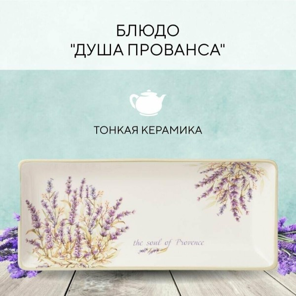 блюдо керамическое для сервировки из тонкой керамики, высота 3 см, серия "Душа Прованса" 28*12 см