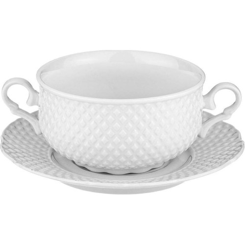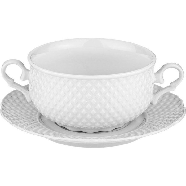 Бренд - Lefard / Лефард Страна - китай Материал - Фарфор Вес - 0.63 кг Бульонница на подставке Диаманд 350 мл арт. 359-462 TM Lefard коллекция "Диаманд" - посуда и предметы сервировки из белого фарфора с рельефом. Изделия выполнены из упрочненного фарфора. Стильная упаковка. Идеальная сервировка праздничного и ежедневного стола. Отличный подарок! Продукция сертифицирована, безопасна для контакта с пищевыми продуктами. Можно ставить в микроволновую печь и мыть в посудомоечной машине.