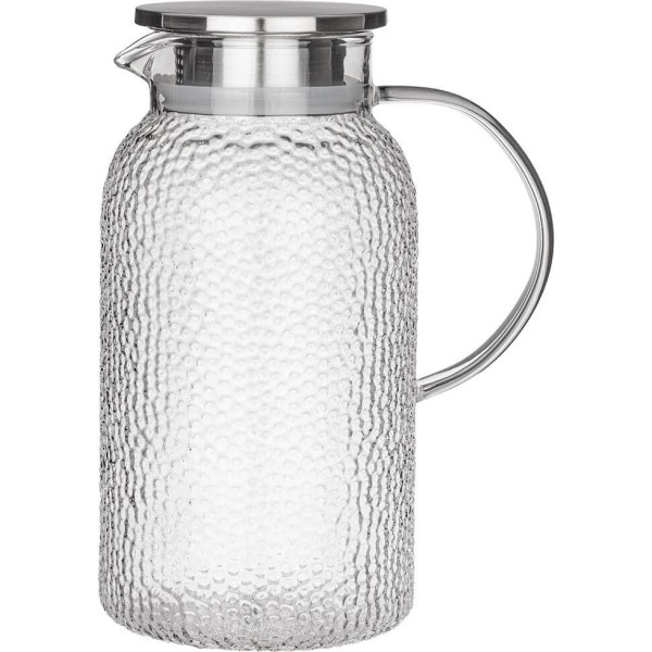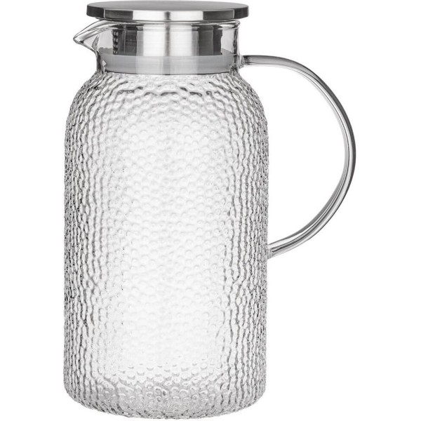 Кувшин оснащен удобной ручкой и плотно закрывающейся крышкой.