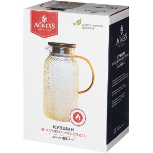 Стеклянный кувшин выполнен из термостойкого жаропрочного стекла, которое выдерживает высокую температуру кипящей воды.