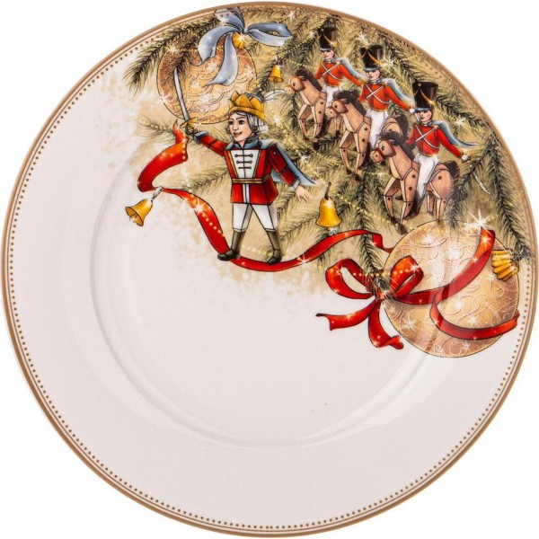 ТМ LEFARD эксклюзивная коллекция «Nutcracker» - Щелкунчик создана по мотивам одноименной истории, с которой знакомы все дети и взрослые. Волшебная история о новогоднем чуде идеально подходит для создания праздничного настроения. Широкий ассортимент тарелок, салатников, кружек, чайных пар поможет сервировать праздничный стол и создать сказочную атмосферу. Все изделия выполнены из качественного тонкого фарфора. Прямые современные формы, удобные объемы. Стильная, подарочная упаковка. Дарите сказку друзьям и близким людям! Можно использовать в СВЧ, не рекомендуется мыть в посудомоечных машинах во избежание повреждения золотой отводки (деколи) на изделиях.