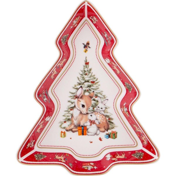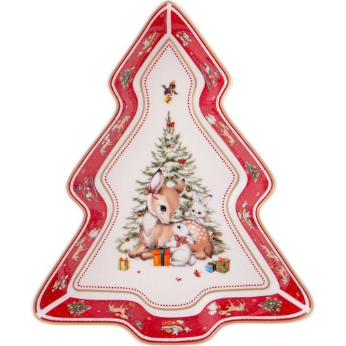 LEFARD БЛЮДО "С НОВЫМ ГОДОМ " В ФОРМЕ ЕЛКИ 25Х21Х4 СМ КРАСНОЕ (КОР=8ШТ.) 85-2050