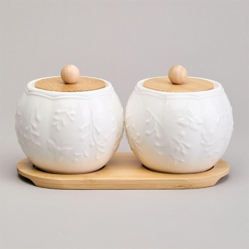 LEFARD НАБОР САХАРНИЦ "NATIVE" 2 ШТ. 10*10 СМ 300 МЛ НА ДЕРЕВ. ПОДСТАВКЕ 761-146