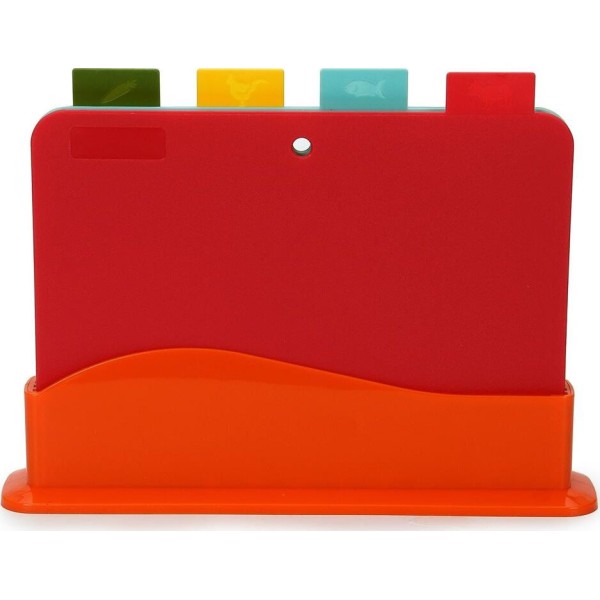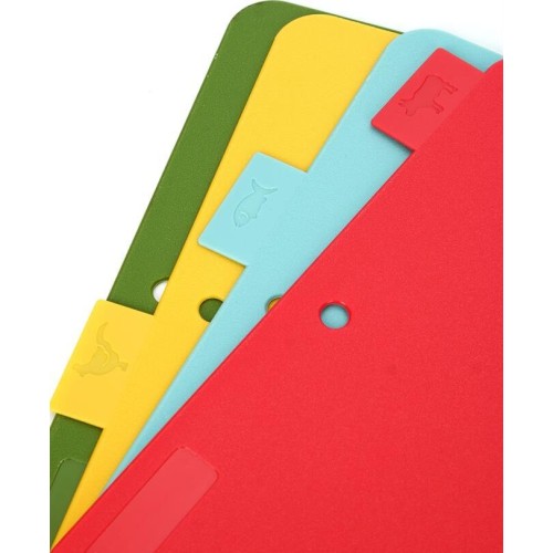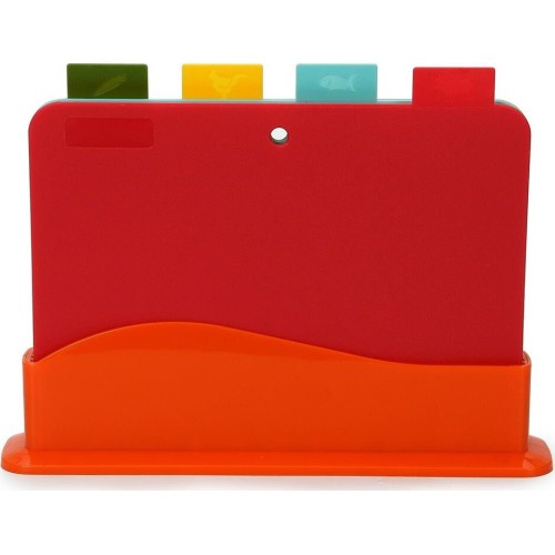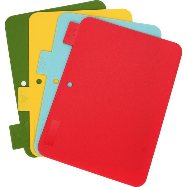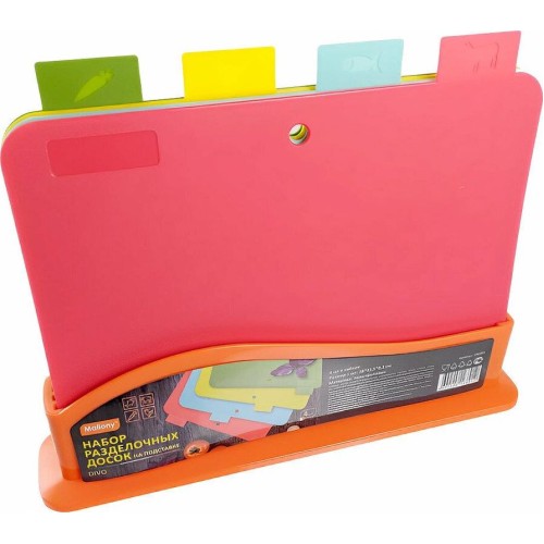 Набор разделочных досок 4 шт в наборе Каждая доска имеет специальную маркировку, что позволяет использовать ее для определенных продуктов Размер 1 шт: 29,00*22,5*0,2 см Вес набора: 630 гр Материал: полипропилен Упаковка: термоусадка с цветным стикером Преимущества: - прочный безопасный пластик; - 4 доски в комплекте; - удобная маркировка; - оптимальный размер; - компактное хранение в подставке.