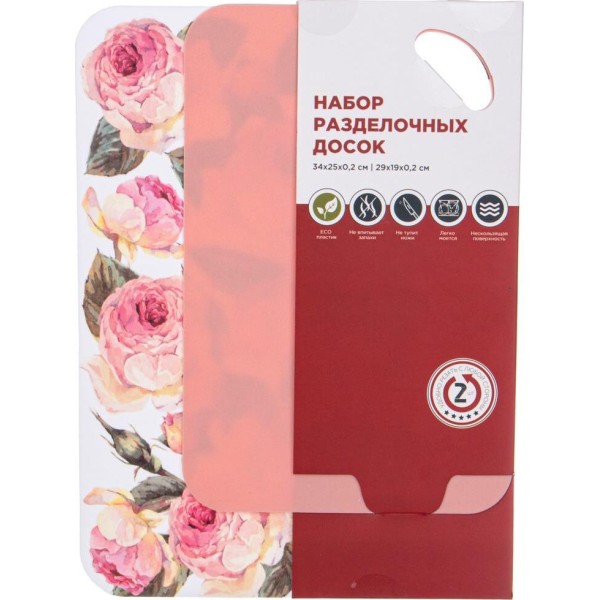 Набор досок разделочных. Форма изделия прямоугольная Особенности посуды - долгий срок службы; не впитывает влагу и запахи; для мяса хлеба сыра овощей. Размеры 34*25*0,2/29*19*0,2см Материал Пластик