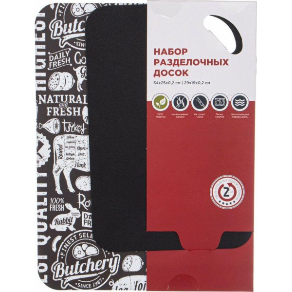 Набор досок разделочных. Форма изделия прямоугольная Особенности посуды - долгий срок службы; не впитывает влагу и запахи; для мяса хлеба сыра овощей. Размеры 34*25*0,2/29*19*0,2см Материал Пластик
