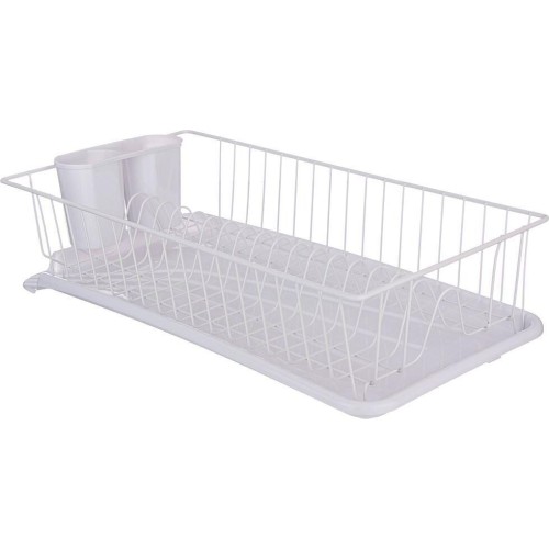 Универсальная сушилка для посуды 49х24,5х11 см – это стильный компактный аксессуар, который позволить сэкономить и упорядочить пространство на кухне. Сушилку можно поставить на полку шкафчика или использовать прямо на открытой кухонной поверхности. Имеет продуманную конструкцию. Кроме того, предусмотрены стаканы для сушки столовых приборов. Поддон для сбора воды легко вынимается и ставится обратно. Крепкое изделие из металла не боится влаги и не подвержено коррозии.