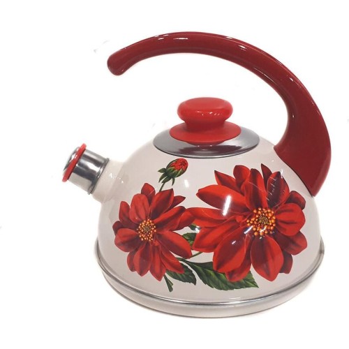 Чайник 2,5л T04/25/04/09/H13 (конс.ручка) слон. кость Лера (декор. нержавеющая сталь на красном) - это эмалированный чайник со свистком, который станет незаменимым помощником на вашей кухне. Трехслойное эмалевое покрытие обеспечивает защиту стали от коррозии и кислот, а также придает посуде гладкую стекловидную поверхность. Цвет эмали - белый, с деколью, что делает чайник стильным и привлекательным. Фиксированная консольная бакелитовая ручка обеспечивает удобство и безопасность использования.