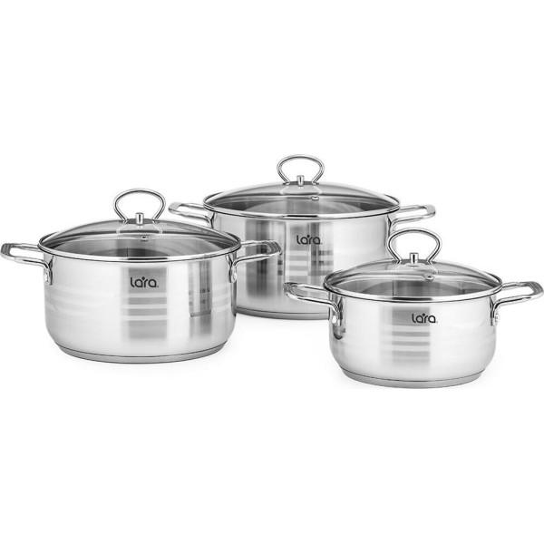 LR02-80 Набор посуды LARA Standart (1.8л + 3.1л + 5.7л) капсулированное индукционное дно, крышки