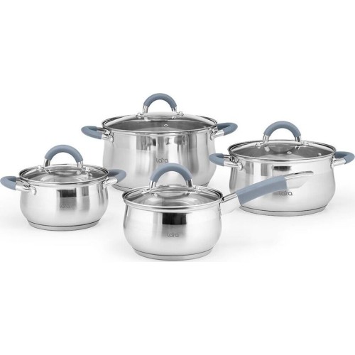LR02-93 Набор посуды LARA Bell 8 пр, капс. инд.дно,силикон руч(сотейник, кастрюли: 1.9л, 3.6л, 6.1л)