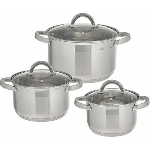 Параметры В наборе 6 предметов: кастрюля с крышкой 16х10,5см; 2,2л кастрюля с крышкой 18х11,5см; 3 л кастрюля с крышкой 22х13,5см; 5,2л Толщина стали 0,5 мм Описание Набор кастрюль из высококачественной нержавеющей стали со стеклянными крышками Серия: Standart Термосберегающее дно: пятислойное дно с повышенной термоотдачей Специальная форма, исключающая скопление остатков пищи и жира Обод, препятствующий переливанию жидкостей через край Быстрый нагрев пищи, длительное удержание тепла Минимальные потери минеральных веществ, витаминов и вкусовых качеств Подходит для использования на всех типах кухонных плит, включая индукционные Подходит для мытья в посудомоечной машине Упаковка: цветная коробка