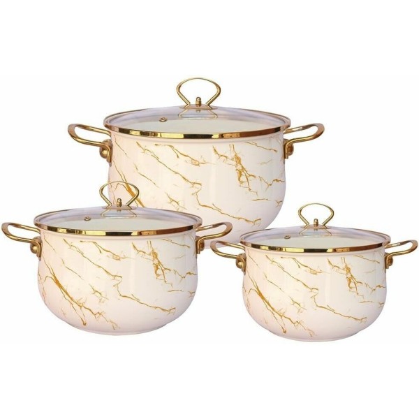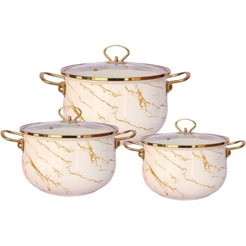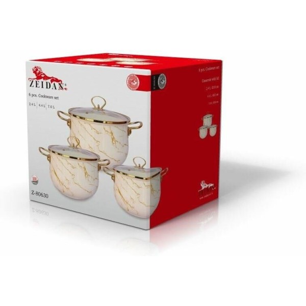 Набор кастрюль ZEIDAN Z-80630 6 предметов Marble, Набор кастрюль, 6 предм. (3 КАСТРЮЛИ С КРЫШКАМИ: 2,4 Л (d18 см), 4,4 Л (d22 см), 7,0 Л (d26 см) с внутренним и внешним трехслойным эмалированным покрытием, материал - углеродистая сталь. Ручки на корп