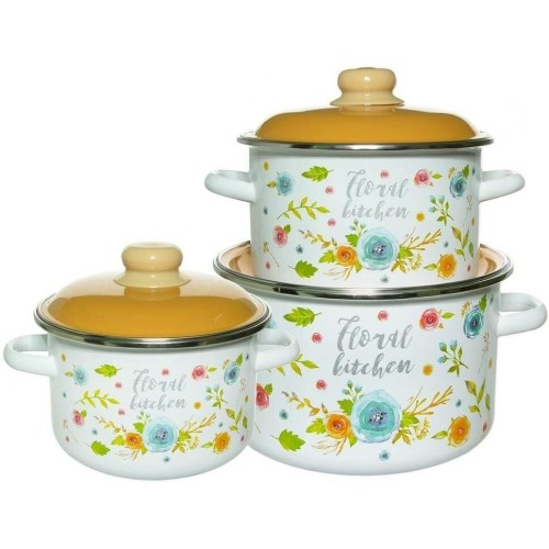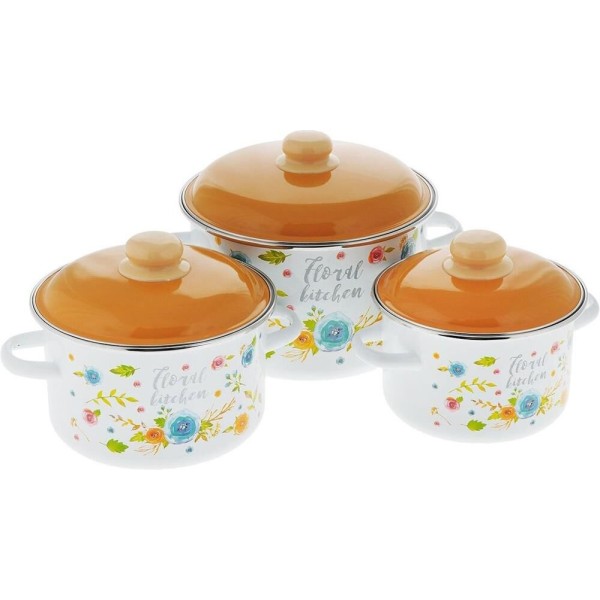 Стальная эмалированная посуда ТМ Appetite серии Floral kitchen. Кастрюли изготавливаются из экологичного природного сырья и соответствует стандартам ГОСТ, что гарантирует отсутствие химических реакций и сохраняет вкус пищи при приготовлении. Стекловидное эмалированное покрытие надежно предохраняет металл основания от контакта с продуктами. Кастрюли отличаются высоким качеством. Изделия подходит для всех видов плит. Гладкая не пористая поверхность посуды обеспечивает простой и легкий уход.