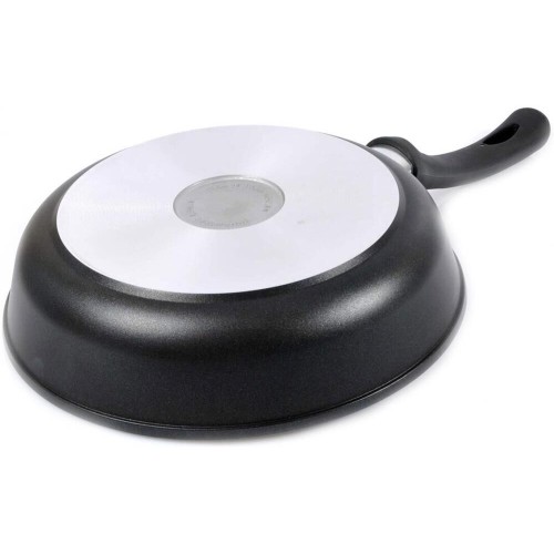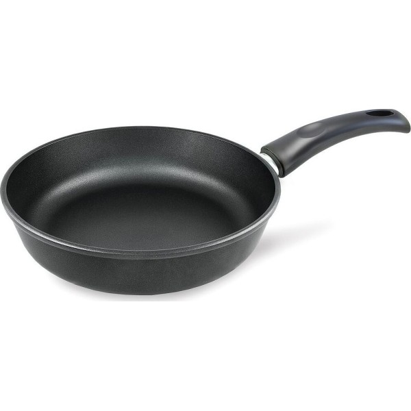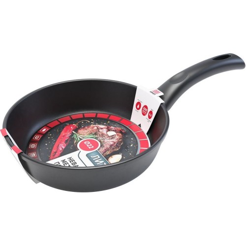 Общий диаметр 22 см Диаметр дна 16 см Толщина дна 6 мм Толщина стенок 4 мм Высота 5.5 см Тип универсальная сковорода Материал литой алюминий Форма круглая Наличие ручки 1 длинная Материал ручки бакелит Антипригарное покрытие Возможность мыть в посудомоечной машине