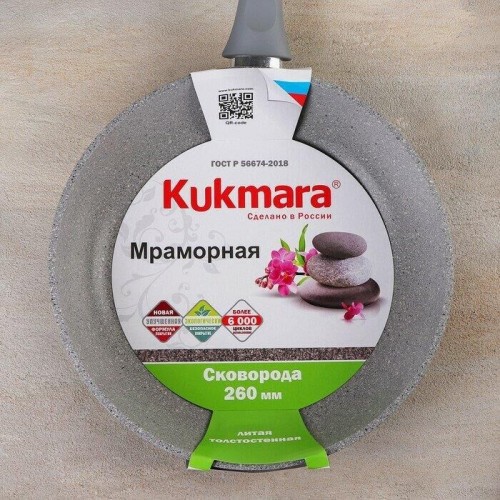 Объем, л./размер, см: 26см Материал: литой алюминий Коллекция/серия: Мрамор Торговая марка: Kukmara Толщина дна: 6 Толщина стенок: 4 Источник тепла: Все виды плит, кроме индукционной Тип упаковки: цветная коробка Внутреннее покрытие: антипригарное покрытие Greblon C2 фирмы Weilburger Coatings GmbH Внешнее покрытие: антипригарное покрытие Greblon C2 фирмы Weilburger Coatings GmbH