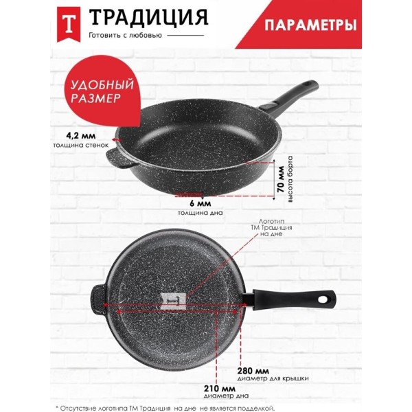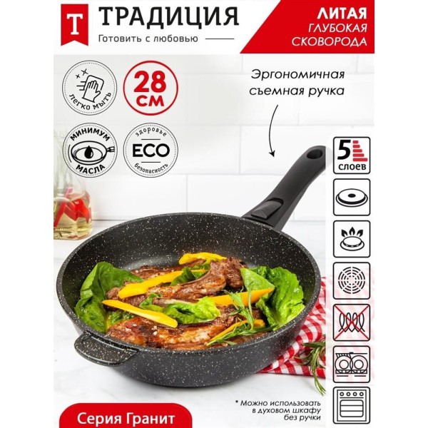 Сковорода ТРАДИЦИЯ ТГ2285 а/пр литая 28см съемн/руч Гранит