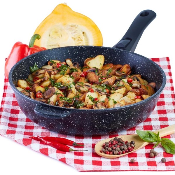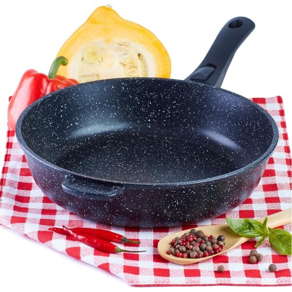 Объем, л./размер, см: 28 см Материал: литой алюминий Коллекция/серия: Гранит Толщина дна: 6 Толщина стенок: 4.2 Источник тепла: Все виды плит, кроме индукционной Тип упаковки: цветной рукав Внутреннее покрытие: антипригарное покрытие Greblon NewTec C2+ Внешнее покрытие: антипригарное покрытие Greblon NewTec C2+ Ручка: съемная soft-touch