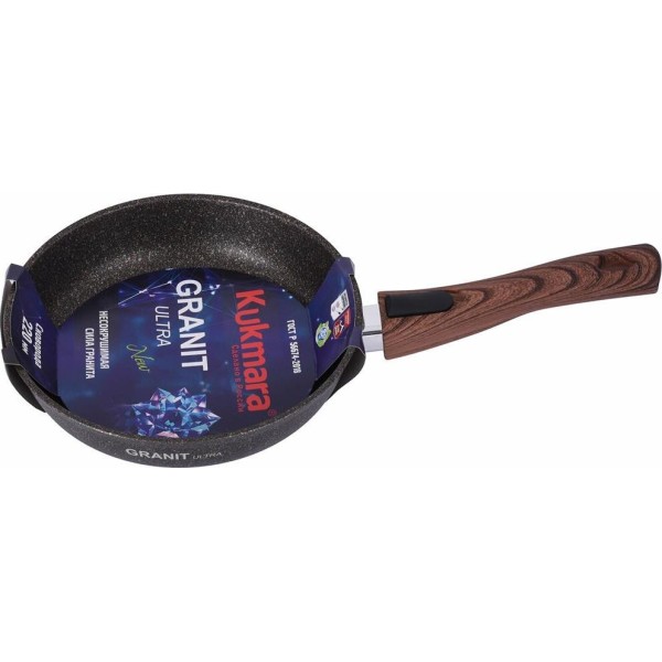 Объем, л./размер, см: 22см. Материал: литой алюминий Коллекция/серия: Granit ultra original. Торговая марка: Kukmara. Толщина дна: до 6мм. Толщина стенок: до 4.5мм. Ручка: съемная. Источник тепла: Все виды плит, кроме индукционной. Тип упаковки: цветной рукав. Внутреннее покрытие: Антипригарное мраморное покрытие нового поколения, усиленное сверхтвердыми частицами минералов. Внешнее покрытие: Декоративное износостойкое покрытие с отличной сопротивляемостью к высоким температурам. Можно мыть в посудомоечной машине.