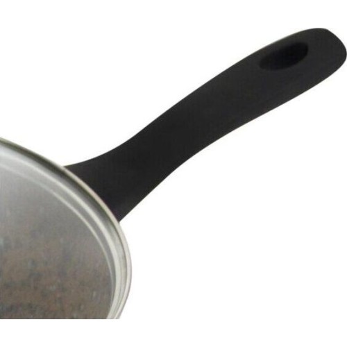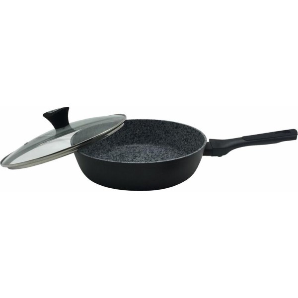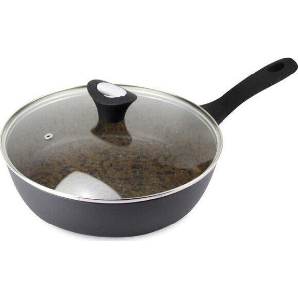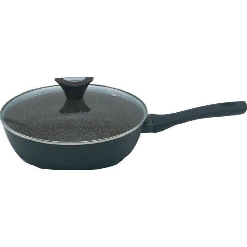 Сковорода с натуральным гранитным покрытием Диаметр 24см. Жаропрочная стеклянная крышка с паровыпуском Антипригарное гранитное покрытие Подходит для всех видов плит Можно мыть в посудомоечной машине Цвет серый