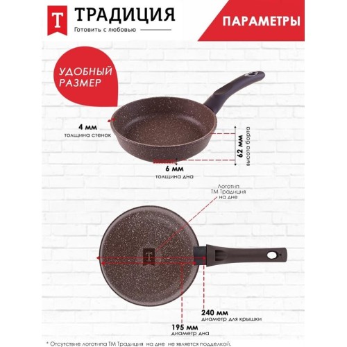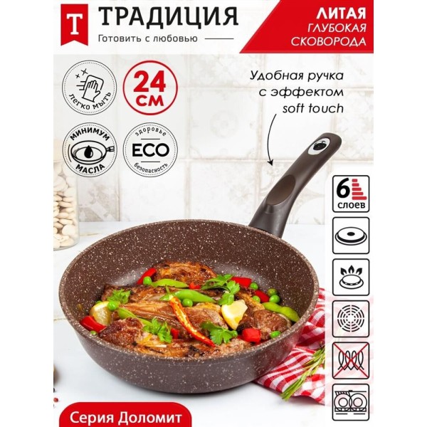 Сковорода ТРАДИЦИЯ ТД2241 антипригарная литая 24см Доломит