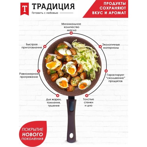 Сковорода ТРАДИЦИЯ ТД2245 антипригарная литая 24см съемн/руч Доломит
