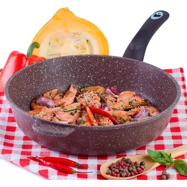 Литая сковорода с антипригарным покрытием 28 см сделана из литого алюминия. Подходит для частого применения, идеальна для жарки и тушения при возможности использования минимального количества масла или совсем без него. Полностью безопасна и безвредна для здоровья. Подходит для всех типов плит, кроме индукционной плиты. Ручка не нагревается при длительном использовании. Толщина дна 6 мм Толщина стенок 4 мм