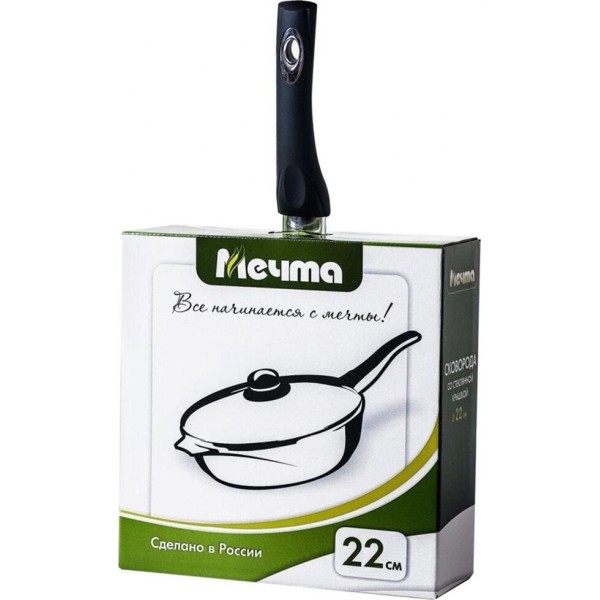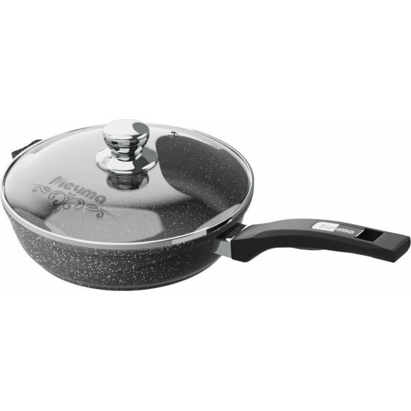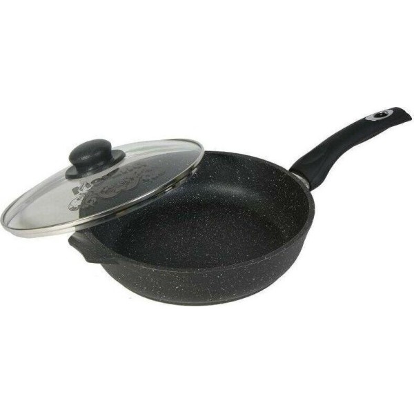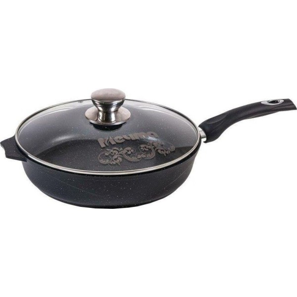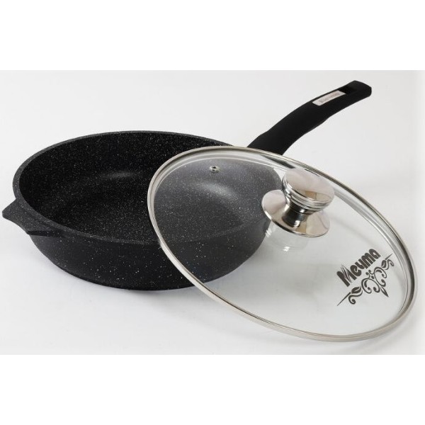 Сковорода МЕЧТА С22802 Гранит black 22см с несъемной ручкой и стекл. крышкой