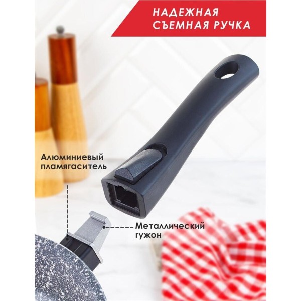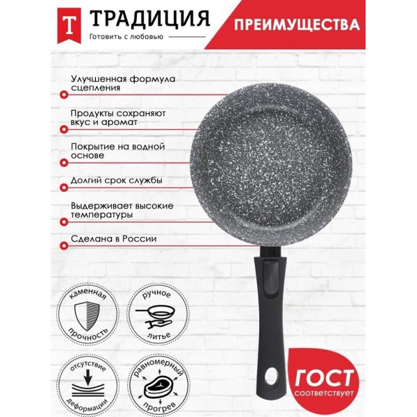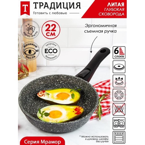 Сковорода ТРАДИЦИЯ ТМ2225 Сковорода а/пр литая 22см съемн/руч Мрамор