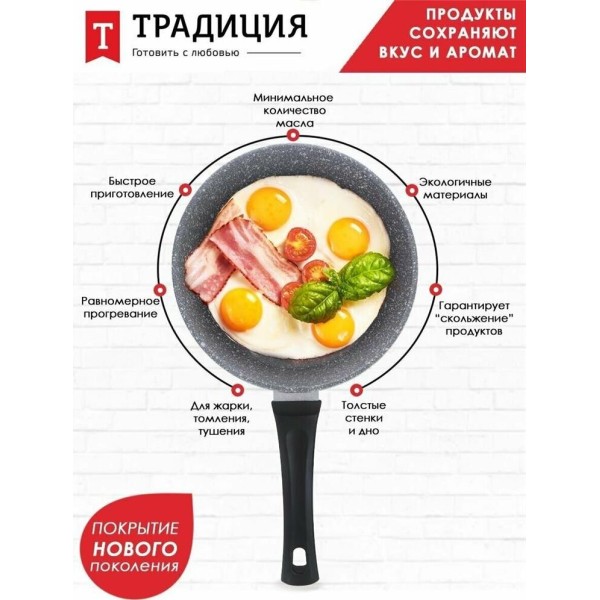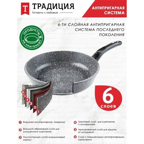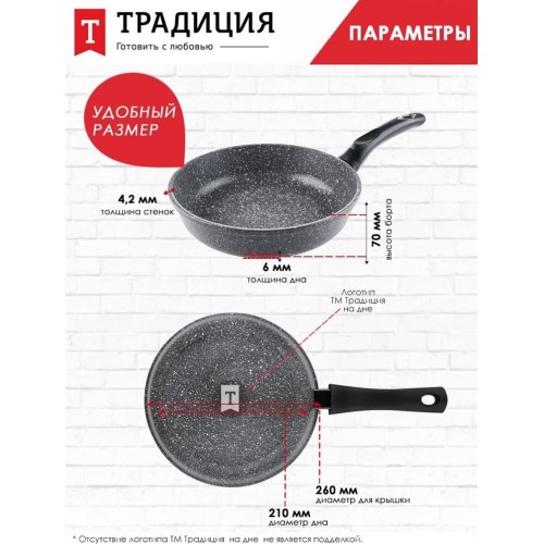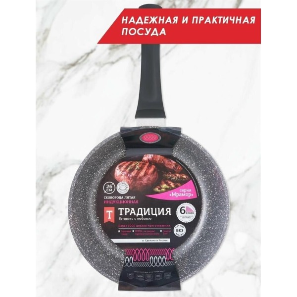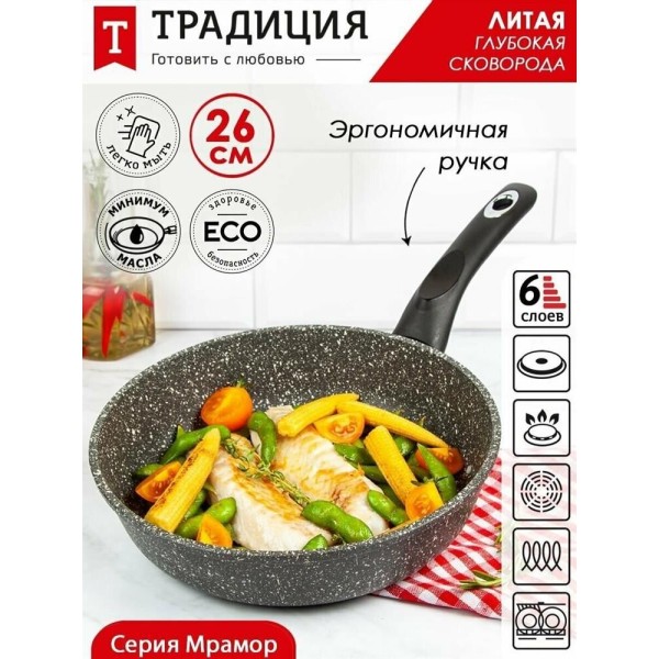 Сковорода ТРАДИЦИЯ ТМ2261 Сковорода а/пр литая 26см Мрамор