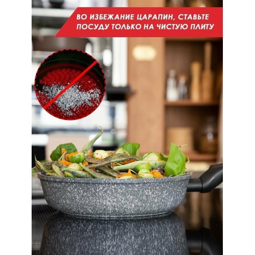 Объем, л./размер, см: 26 см Материал: литой алюминий Коллекция/серия: Мрамор Торговая марка: Традиция Толщина дна: 6 Толщина стенок: 4.2 Источник тепла: Все виды плит, кроме индукционной Тип упаковки: цветной рукав Внутреннее покрытие: антипригарное покрытие Pfluon Внешнее покрытие: антипригарное покрытие Pfluon