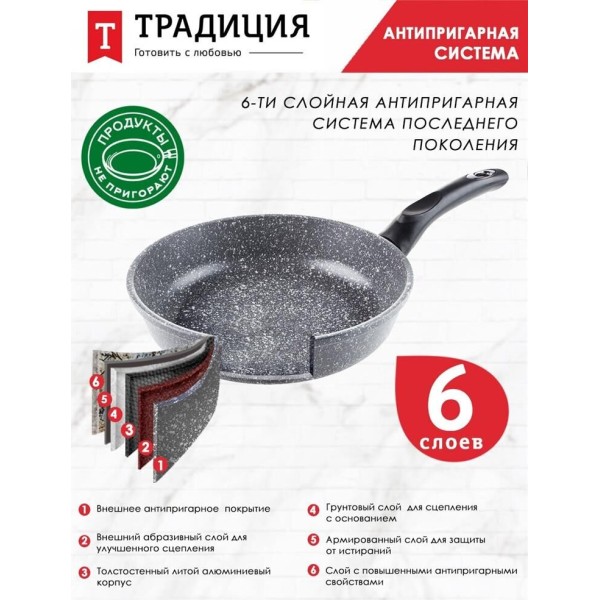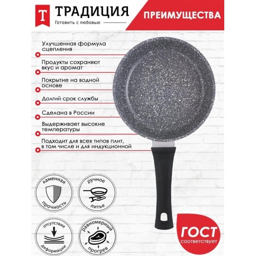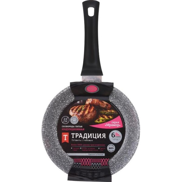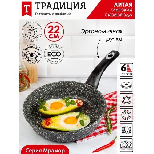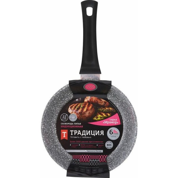 Сковорода ТРАДИЦИЯ ТМ2221И а/пр литая 22см Мрамор индукция