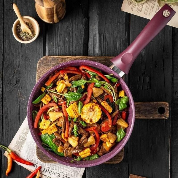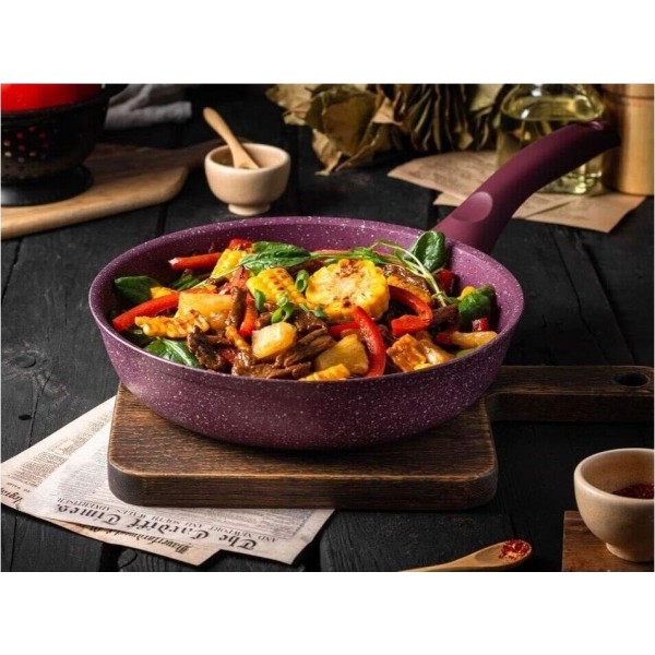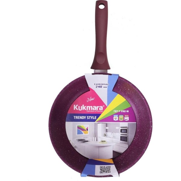 Сковорода а/пр литая 24см Trendy style mystery ТМ KUKMARA Изготовлена из литого алюминия толщина стенки- 4,5мм; Толщина дна- 6 мм. Подходит для всех типов плит, кроме индукционных. Можно мыть в посудомоечной машине. Произведено в России.
