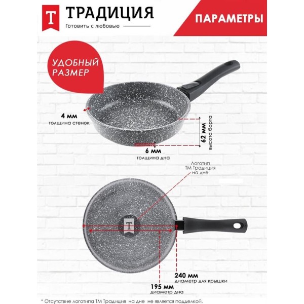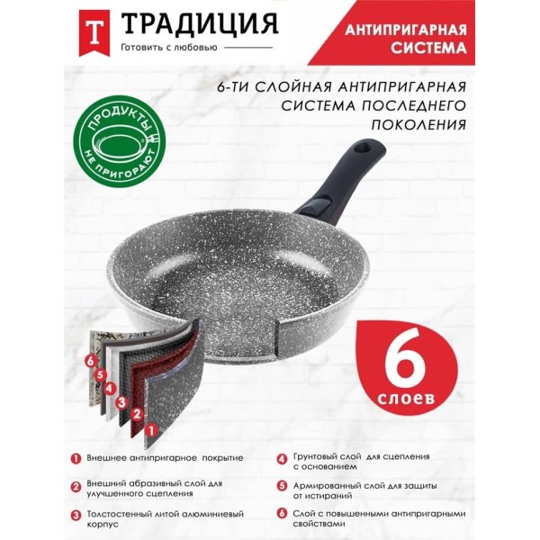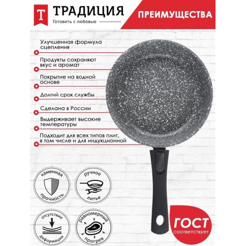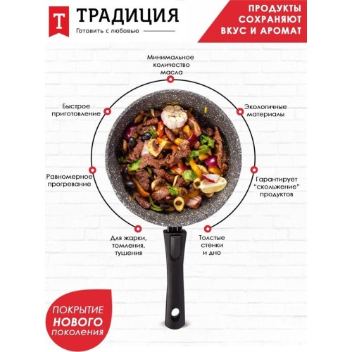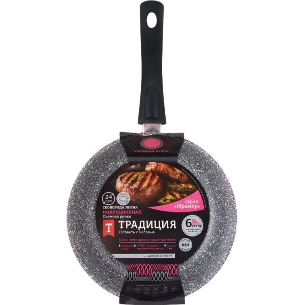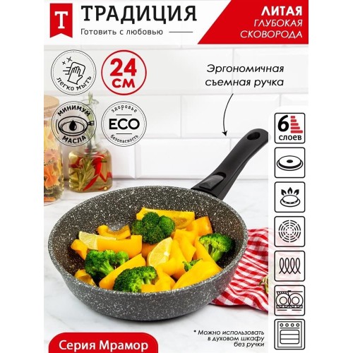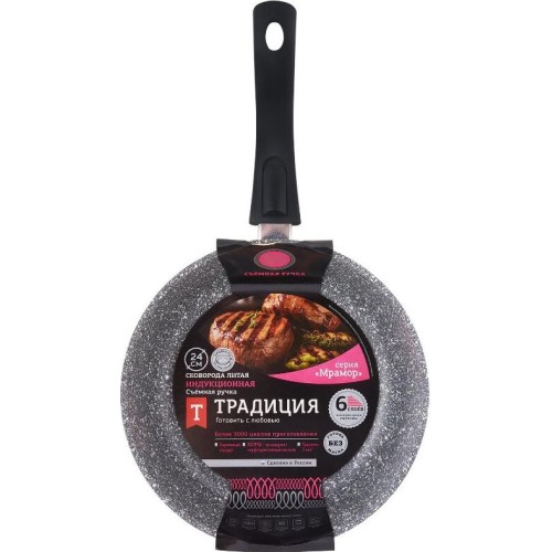 Сковорода ТРАДИЦИЯ ТМ2245И а/пр литая 24см съемн/руч Мрамор индукция