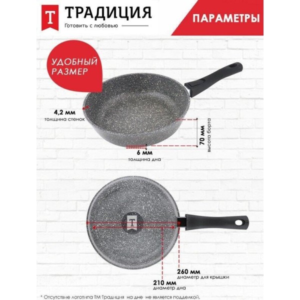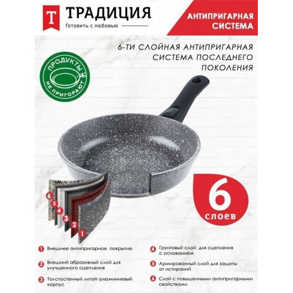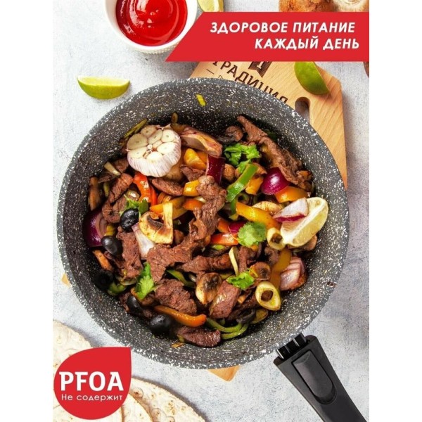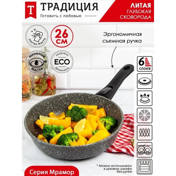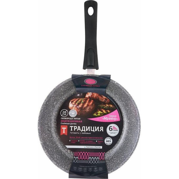 Сковорода ТРАДИЦИЯ ТМ2265И а/пр литая 26см съемн/руч Мрамор индукция